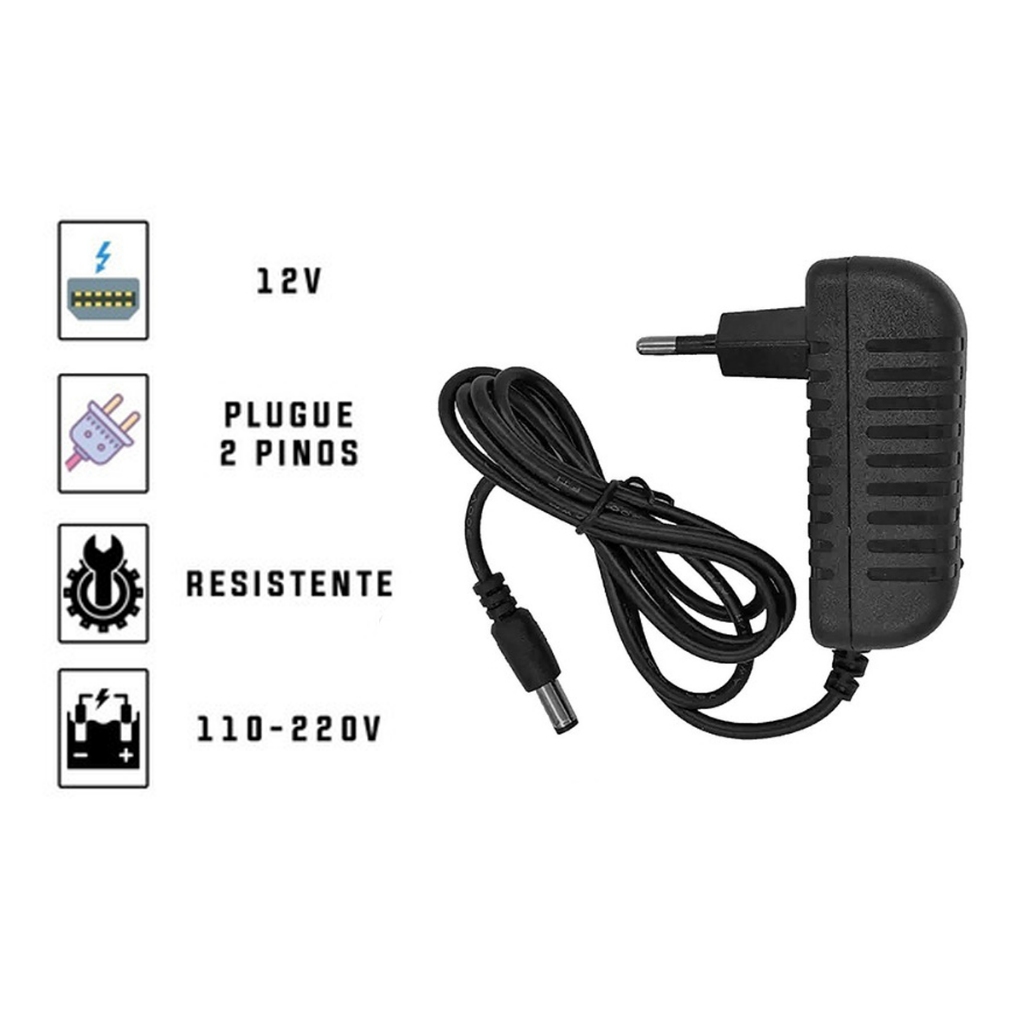 Descrição Produto de excelente qualidade - Fonte de Alimentação 12v 2A. Imagens meramente ilustrativas, o modelo da fonte pode alterar conforme estoque porém a amperagem e voltagem são correspondentes Pode ser usada em qualquer sistema para alimentar: Fitas led, CFTV, micro câmeras, câmeras profissionais, câmeras com infravermelho, etc. Especificações; - Voltagem de entrada: 110/220V Bivolt automática; - Voltagem de saída: 12v; - Amperagem: 2 Amperes; - Conector(diâmetro): Plug P4 macho 2,1mm x 5,5mm - Polaridade de saída: positivo interno / negativo externo - Frequência: 50/60Hz - Potência Máxima: 24 Watts - Comprimento do cabo: 38cm - Proteção Contra Curto Circuito e Sobre Carga OUTPUT: 12V - 2A Garantia do vendedor: 30 dias