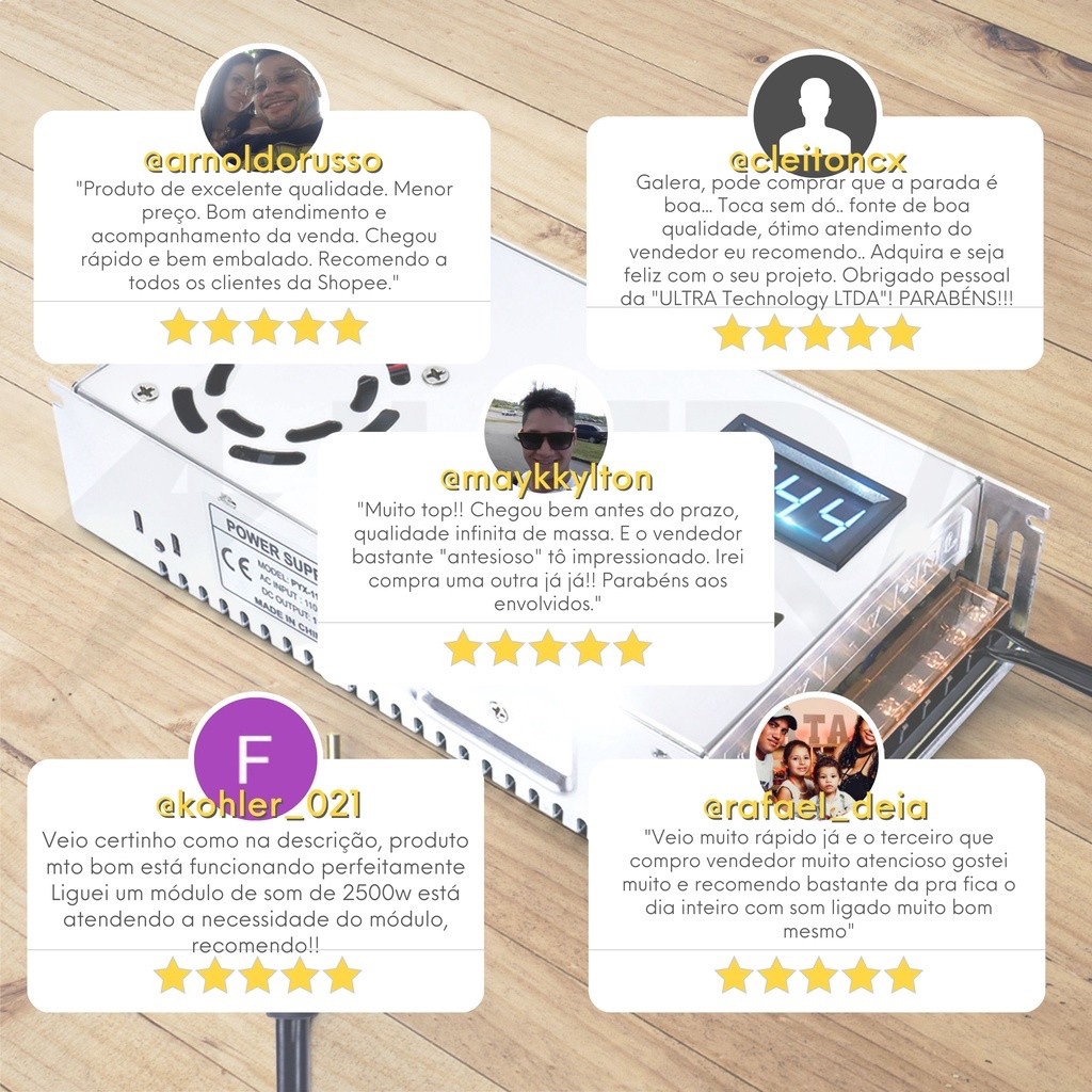 ✅ Todos os modelos acompanham cabo e chaveiro exclusivo! 💬 Informações adicionais sobre cada modelo no final da descrição e nas imagens! ✅ Realizamos o envio rápido do seu pedido para você receber o quanto antes 💬 Atendentes que garantem suporte completo do pré ao pós venda ✅ Sobre a fonte: Com seu corpo e sistema elétricos elaborados por engenheiros de alto nível, além de ser potente e compacta, possui máximo potencial de resfriamento, entregando para você, comprador, um produto realmente EFICIENTE! 🔋 UTILIDADES: É utilizada principalmente em sons, câmeras de segurança, radioamadores, fitas de LED e outros equipamentos. 🥶 SISTEMA DE RESFRIAMENTO INTELIGENTE: Modelos 120A e 200A possuem sistema de resfriamento inteligente Smart Cooler, com aceleração automática da ventoinha que reconhece e controla a temperatura, aumentando o desempenho e vida útil do produto. Modelo 50A não possui ventoinha, realizando dissipação por dissipação no corpo de aluminio! 🛡️ SEGURANÇA: Possui sistema de proteção, garantindo a segurança de todos os equipamentos conectados em casos de surtos de energia! ✅ ✅ Todas são TESTADAS E APROVADAS antes de serem ENVIADAS para os clientes! ⚙️ ESPECIFICAÇÕES TÉCNICAS: Modelo 50 Amperes: - Tamanho: 195x98x40mm - Quantidade de conexões: 7 (3 entrada energia, 4 saída) - Recomendada para módulos com até 800W ou 50A de consumo - Tensão de entrada: 110/220V +/- 15% (BIVOLT manual) - Tensão de saída: 12V a 14.4V Ajustável - Resfriamento passivo por dissipação, não possui ventoinha Modelo 120 Amperes: - Tamanho: 196x110x49mm - Quantidade de conexões: 9 (3 entrada energia, 6 saída) - Recomendada para módulos com até 1.800W ou 120A de consumo - Tensão de entrada: 110/220V +/- 15% (BIVOLT manual) - Tensão de saída: 12V a 14.4V Ajustável - Resfriamento ativo com ventoinha Modelo 200 Amperes: Tamanho: 240x120x65mm - Quantidade de conexões: 9 (3 entrada energia, 6 saída) - Recomendada para módulos com até 3.000W ou 200A de consumo - Tensão de entrada: 110/220V +/- 15% (BIVOLT manual) - Tensão de saída: 12V a 14.4V Ajustável - Resfriamento ativo com ventoinha Atenção: Nem todos os modelos possuem voltímetro. Verifique na imagem da variação!