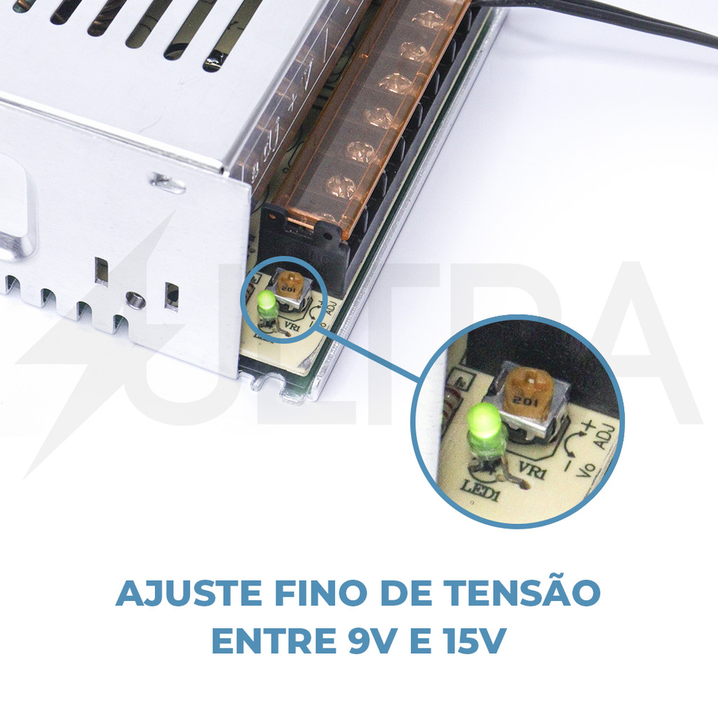 SOBRE A FONTE A Fonte Chaveada 90A de Alta Performance é CAMPEÃ DE CUSTO BENEFÍCIO no mercado nacional e tem seu corpo e sistema elétricos elaborados por engenheiros de alto nível, visando a produção de uma fonte potente, compacta e com o máximo potencial de resfriamento para entregar para os clientes um produto realmente EFICIENTE! UTILIDADES: É utilizada principalmente para alimentar/carregar baterias, sons automotivos, caixas de som residenciais, além de câmeras de segurança, radioamadores, fitas de LED e outros equipamentos. SISTEMA DE RESFRIAMENTO INTELIGENTE: Possui sistema de resfriamento inteligente Smart Cooler, com aceleração automática da ventoinha que reconhece a temperatura e trabalho da fonte, aumentando o resfriamento quando necessário para manter o equipamento frio, aumentando o desempenho e vida útil do produto. SEGURANÇA: As fontes chaveadas ULTRA possuem sistema de proteção contra curto-circuito, garantindo a segurança da fonte e de todos os equipamentos que estão conectados a ela em eventuais surtos de energia! Todas as fontes são TESTADAS E APROVADAS por técnicos especializados antes de serem ENVIADAS para os clientes! ESPECIFICAÇÕES: Tensão de entrada: 110/220V +/- 15% (BIVOLT manual) Tensão de saída: 9V a 15V Ajustável Tensão de saída: 90A (máximo) Conteúdo da caixa: Fonte Chaveada 90A Ultra + Cabo Alimentação FAQ - Perguntas Frequentes: 1- Em quantos dias minha fonte será despachada? R.: Possuímos equipe especializada de despache, contando com um dos preparos mais rápidos do Brasil. Sua fonte será despachada já na próxima coleta. Caso sua compra seja realizado em hora útil, seguirá no mesmo dia. Garantindo que você receba o produto e possa desfrutar de sua fonte o quanto antes! 2- Até quantos amperes REAIS a fonte é capaz de fornecer? R.: A fonte além de possuir baixo custo, possui alta potência, capaz de fornecer até 90 amperes (Reais) e sendo recomendada para projetos que consumam ATÉ 90 amperes, atendendo com perfeição por diversos anos! 3- Meu equipamento consome menos que 90 amperes, posso utilizar esta fonte? R.: Com certeza! A fonte reconhece o consumo do equipamento e transfere apenas o suficiente para suprir a demanda de energia, evitando assim a sobrecarga e garantindo a segurança e eficiência de qualquer equipamento que esteja sendo alimentado. 4- A fonte possui sistema de proteção? R.: Sim, a fonte possui sistema de proteção interno que filtra e protege os equipamentos que estão sendo alimentados de qualquer curto circuito ou sinistro na rede elétrica. 5- A fonte serve para carregar bateria? R.: Sim! Todas as fontes deste anúncio carregam baterias 12V com perfeição, de forma saudável e segura, prolongando a vida útil da bateria através de um carregamento de qualidade! 6- Vocês fornecem suporte pós venda? R.: Sim, temos atendentes especializados para te atender antes, durante e após sua compra. Podendo sanar suas dúvidas ou te ajudando em qualquer assunto relacionado as fontes compradas conosco. Ao adquirir a fonte, você tem acesso exclusivo ao nosso time de suporte online que está treinado e qualificado para te atender com atenção e cordialidade! 7- Por que comprar com a Ultra Technology? R.: A Ultra Technology é uma conhecida e renomada distribuidora de acessórios elétricos automotivos e informática que está no ramo há mais de 5 anos, contando com profissionais qualificados, experiência de mercado e atendimento especializado de ponta a ponta. Além disso, todos nossos produtos possuem nota fiscal, garantia e suporte pós venda, garantindo que você cliente tenha uma compra de sucesso e fique satisfeito com o produto adquirido.