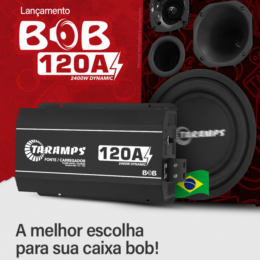 Fonte BOB Dynamic 120A 12V Bivolt Para Som Automotivo Residencial Proficional