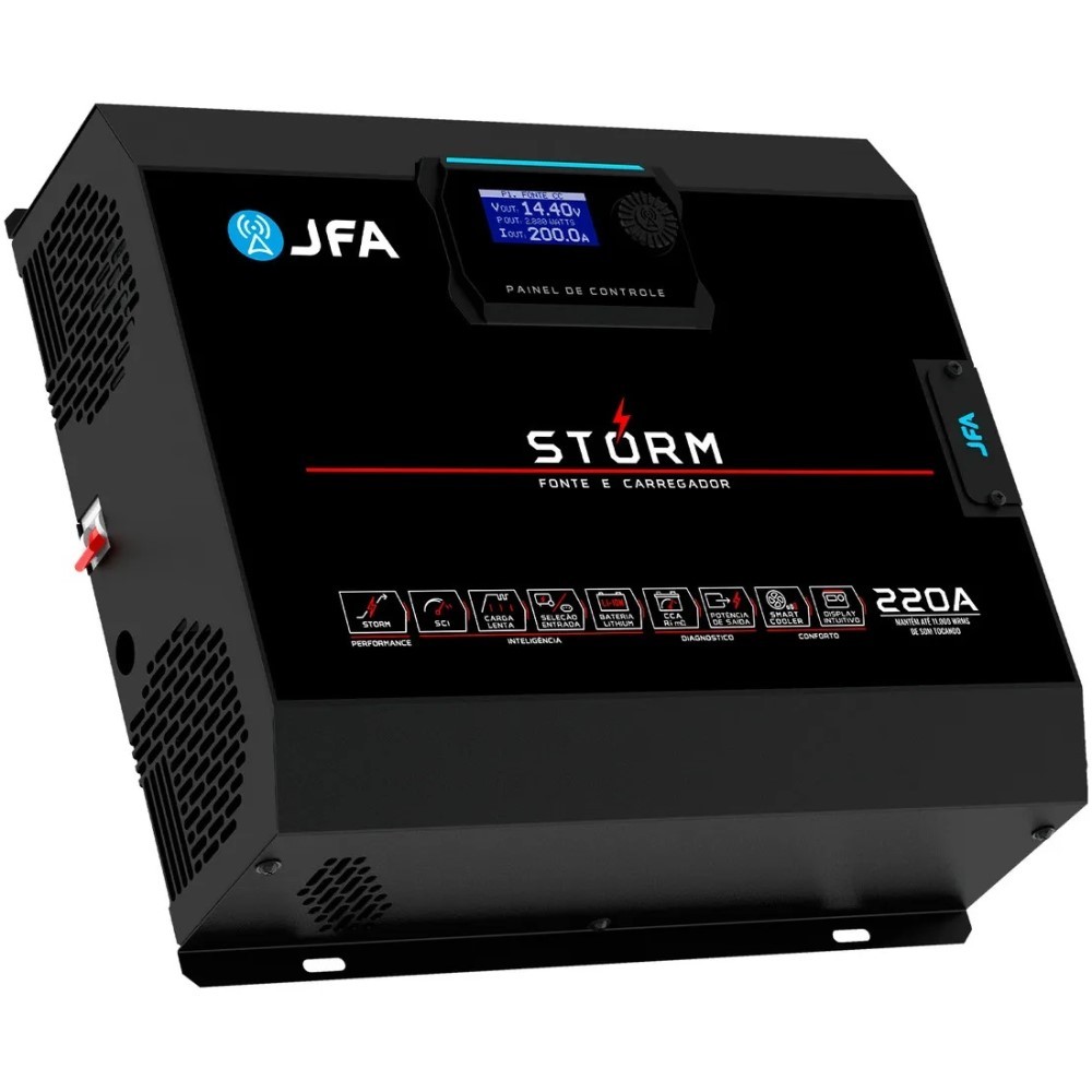 Fonte Carregador Automotivo JFA Storm 220a Bivolt Voltimetro e Amperimetro Carregamento Inteligente