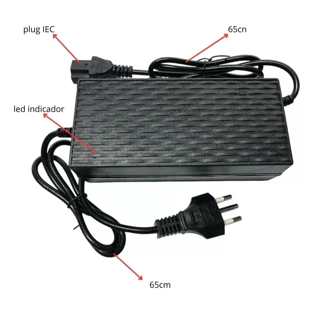 Carregador de Bateria Lítio 48V (54.6V) 2A Plug IEC Para Bicicleta Elétrica Especificações Técnicas: - Tensão de saída: 54.6V - Tensão da bateria: 48V - Amperagem: 2A - Plug: Padrão IEC (três pinos) - Compatibilidade: Baterias de íons de lítio 48V para bicicletas elétricas, scooters, patinetes e similares. Vantagens: - Carregamento rápido e seguro com 2 Amperes - Ideal para baterias 48V com carregamento em 54.6V - Plug IEC universal – fácil de conectar - Compacto e leve, perfeito para transporte Compatível com: Bicicletas elétricas com bateria de íons de lítio de 48V (confira a voltagem da sua bateria antes da compra). Itens Inclusos: - 1x Carregador 48V (Saída 54.6V) com plug IEC - 1x Cabo de alimentação (padrão brasileiro) Atenção: Verifique a voltagem e o tipo de conector da sua bicicleta antes da compra. Não compatível com baterias de chumbo ou com voltagens diferentes de 48V. Garantia de fábrica: 90 dias