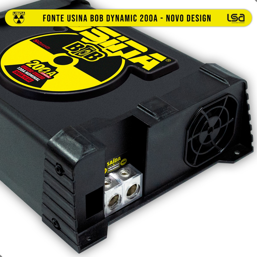 Direcionada para uso em Bobs sem precisar de bateria, A Usina BOB foi desenvolvida especialmente para alimentação de caixas BOB, sabemos que em um sistema de som o consumo musical dos amplificadores é bem abaixo do consumo nominal devido ao programa musical, este apresenta um consumo de potência dinâmico acompanhando os picos de grave de música — sabendo disso, desenvolvemos um exclusivo controle de corrente dinâmico, este controla a corrente de saída da fonte liberando até 70% a mais que a corrente nominal em sua saída, assim temos um produto mais compacto e com um excelente custo benefício para alimentar a sua caixa BOB. Ela possui saída ajustável, de 12,5 à 14,4v, por meio de uma chave analógica digital. Recurso Smart Cooler: O cooler é acionado de acordo com a necessidade da fonte proporcionando um funcionamento mais silencioso e aumentando a vida útil [ESPECIFICAÇÕES TÉCNICAS] • Tensão de Entrada: Bivolt Automático • AC 127Vca: 100 @ 140Vca • AC 220Vca: 170 @ 250Vca • Consumo 127Vca: 23A (máximo) • Consumo 220Vca: 13A (máximo) • Tensão de Saída: 12,5V @ 14,4Vcc (+-1%) • Corrente nominal de Saída: 120A@12,5Vcc (+-5%) • Corrente de Saída: 200A @ 12,5Vcc (+-5%)* • Potência de Saída: 2500 Watts (máxima)** • Rendimento: 85% • Potência de Entrada: 2980 Watts (máxima)** • Cabo de Entrada: 3x2,5mm2 - 2P+T • Proteção de Entrada: Disjuntor 25A • Cabo de Saída: 25mm2 • Extensão Recomendada: 2,5mm2 (máx 30 metros) [CONTEÚDO DA EMBALAGEM] • 1 Fonte Usina Bob 200A Bivolt • 1 Chaveiro Personalizado • 1 Adesivo Spark • 1 Manual de Instruções IMPORTANTE: A Loja do Som e Acessórios recomenda que a instalação seja feita por profissional especializado e não se responsabiliza pelo mau uso do produto. [DÚVIDAS FREQUENTES] • Como funciona a garantia? R: Nossos produtos têm uma etiqueta de garantia para nosso controle interno, com essa etiqueta verificamos se o produto é nosso mesmo, portanto NÃO tire a etiqueta do produto. • O produto está disponível a pronta entrega? R: Sim, todos os nossos produtos estão no nosso estoque preparado para ser embalado e enviado pra você! • Caso haja qualquer dúvida sobre o seu pedido nos envie uma mensagem, estaremos à sua disposição.