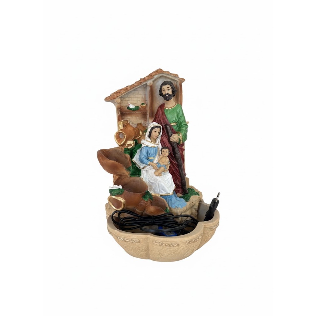 Fonte Cascatas Sagrada Família C/ Bomba Bivolt (110V/220V) Decoração Religiosa Fé
