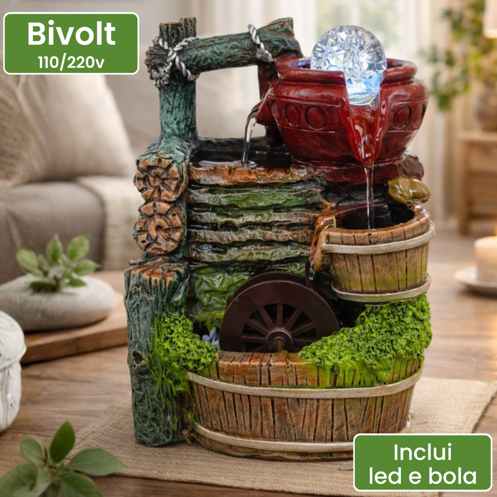 | Fonte de Água Cascata Jarros com Bola Roda Giratoria Decorativa em ... este produto | R$ 159,90 | — | — | 1 |