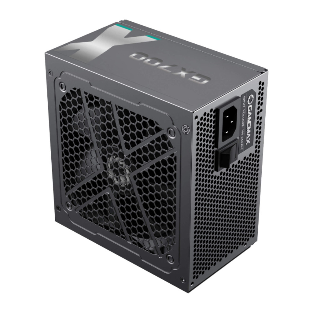 ESPECIFICAÇÕES TÉCNICAS: - Fonte de alimentação Gamer - Modelo: GX700 BK - Cor: Preta Conectores: - ATX 24 pinos (placa mãe): 1 - EPS 12V 8 pinos: 2 - PCI-E 6+2 pinos: 4 - SATA: 6 - Molex 4 pinos: 3 Certificações: -Eficiência de energia: 80 Plus Gold -Segurança elétrica surtos e combustão: cTUV-SUD/UL (EN IEC 60950/62368-1) -Segurança eletromagnética e eletricidade estática: cTUV-SUD (EN 55032/55035, IEC 61000-3-2/3-3) -Restrição substâncias perigosas: NTEK (RoHS 2011/65/EU, 2015/863/EU) -Gestão da qualidade no processo produtivo, suporte e assistência técnica: ISO-9001:2015 (CN11/30858.00), ABNT NBR (NCC 22.09388) Especificações: - Potência: 700W - Versão: ATX - PFC Ativo - LLC DC-DC: Sim - Chave Liga/Desliga - Voltagem com seleção automatica (auto range): 100~240V - Frequência: 50~60Hz - Corrente de entrada: 12~6A - Saída VDC: 3.3V-20A, 5V-20A (100W), +12V-58A (696W), -12V-0.5A (6W), +5VSB-2.5A (12,5W) - Baixo ruído acústico: