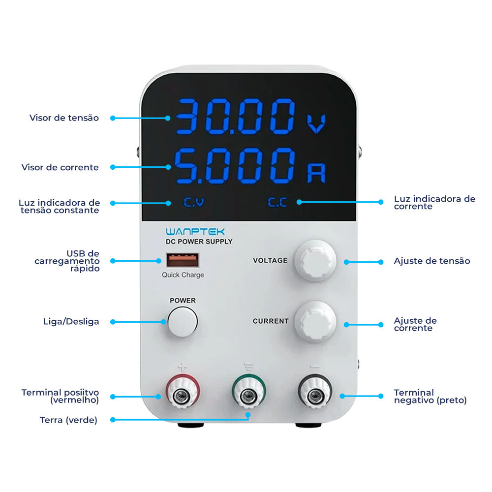 Fonte de Bancada Wanptek GPS305D 30V 5A 150W