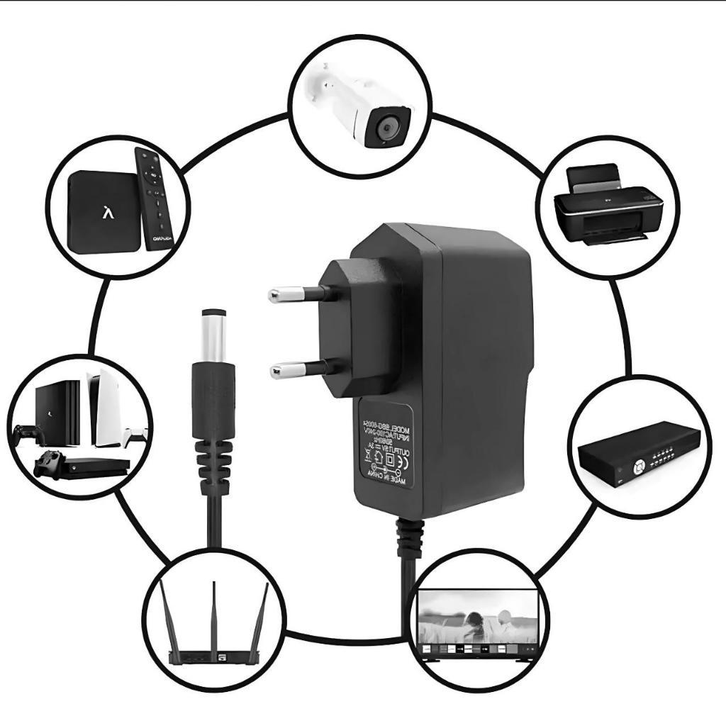 Fonte de Alimentação 5V 2A Bivolt com Plug P4 - Energia Confiável para seus Dispositivos! Mantenha seus dispositivos sempre ligados com a nossa Fonte de Alimentação 5V 2A Bivolt! Ideal para uma ampla gama de aparelhos, esta fonte oferece energia estável e segura, garantindo o funcionamento perfeito dos seus equipamentos. Características: Voltagem: 5V Corrente: 2A Bivolt: Compatível com 110V e 220V (Bivolt) Plug P4: 5,5mm x 2,1mm (padrão Brasil) Compatibilidade: Esta fonte é perfeita para: TV Boxes Impressoras Câmeras de segurança Receptores Modems TVs portáteis Roteadores Dispositivos de iluminação LED Fitas de LED Brinquedos eletrônicos Dispositivos de áudio portáteis Outros aparelhos eletrônicos que utilizem essas mesmas especificações. Benefícios: Versatilidade: Use em diversos aparelhos eletrônicos. Segurança: Proteção contra sobrecarga e curto-circuito. Praticidade: Bivolt automático, ideal para qualquer tomada. Economia: Kits com múltiplas unidades para maior conveniência. Observação: Verifique a compatibilidade do seu aparelho antes da compra. Adquira já a sua e garanta energia de qualidade para seus dispositivos!