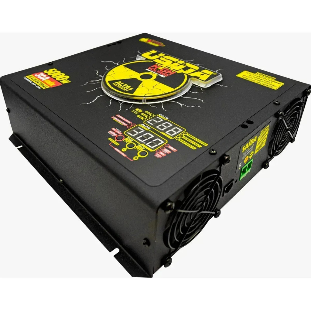 Elas estão de volta e mais fortes do que nunca. 5000W de potência e desempenho pra quem não aceita limite.Fonte Usina Spark HV 30 A High Voltage HV focada em sistemas de som automotivo de alta performance, incluindo modelos com 5000W de potência e tecnologias de controle inteligente Vantagens do Sistema HV Eficiência e Potência: Por trabalhar com tensões altas, a corrente (amperagem) necessária é menor para produzir a mesma potência (ou muito mais), resultando em menor aquecimento dos cabos e menor perda de energia. Cabeamento Menor: Como a corrente é menor, é possível usar cabos de alimentação mais finos (menor bitola) e mais leves para potências altíssimas. Alto Desempenho: Ideal para projetos de trio elétrico, "rachas de som" e competições de alto rendimento (tocar por muito tempo em volumes extremos). HIGH VOLTAGE 5000W – Especificações Técnicas Especificação 16 a 20 Baterias Tensão de entrada Monovolt 220Vac (180 250Vac) Consumo 220Vca (máx.) 40A Tensão de saída 192 @ 320 Vcc (+-1%) Corrente de saída 30A (máxima) Potência de saída 5000W (máxima) Rendimento 95% Potência de entrada 8000 VA Cabo de entrada 2x6mm² Proteção de entrada 40A Cabo de saída 10mm² Extensão recomendada 10mm² (máx. 30 metros) Peso aproximado 4,850 kg Dimensões aproximadas 300 x 300 x 90 mm Gerador recomendado 10 kVA Conteudo da Embalagem - 1 Fonte High Voltage 5000W 30A - 1 Adesivo da Usina - 1 Chaveiro Usina - 1 Premio da SparK Usina (nas 2 primeiras unidades vendidas) Qualquer Duvida Chamar no Chat