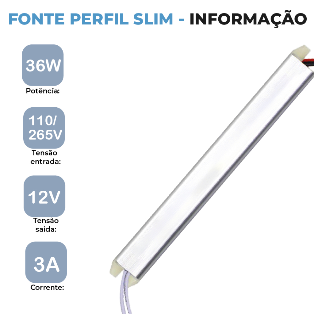 Fonte Slim Driver Chaveada 36W modelo fonte fina 12V~3A Bivolt 110V-265V