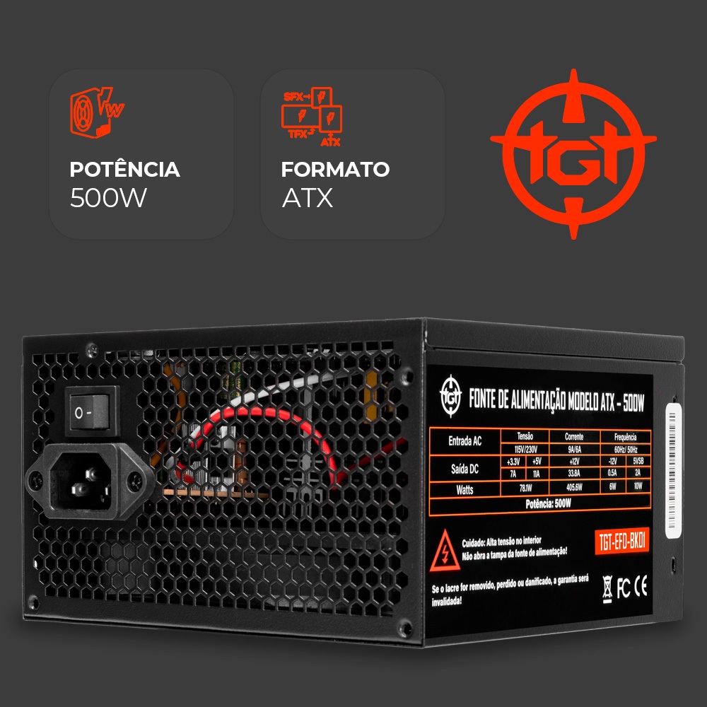 Fonte TGT Enfield, 500W, ATX Bivolt, Preto, TGT-EFD-BK01