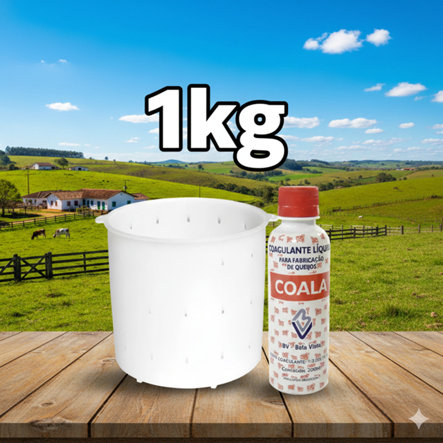 Forma 1kg (Especial e reforçada) + Coalho Líquido Coala 200ml Coagulante Queijo Minas Frescal Ricota