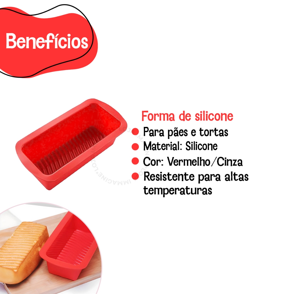 - Pode ser levada ao freezer, forno elétrico ou á gás e micro-ondas. ***Molde de Silicone antiaderente, dobrável e moldável retangular ideal para pães, bolos etc. Suporta temperaturas elevadas (de -40° C até 230° C). Prática para ser lavada a mão ou em máquinas de lavar louças. ESPECIFICAÇÕES TÉCNICAS: - Material: Silicone - Altura: 6 cm - Largura: 13 cm - Comprimento: 26cm