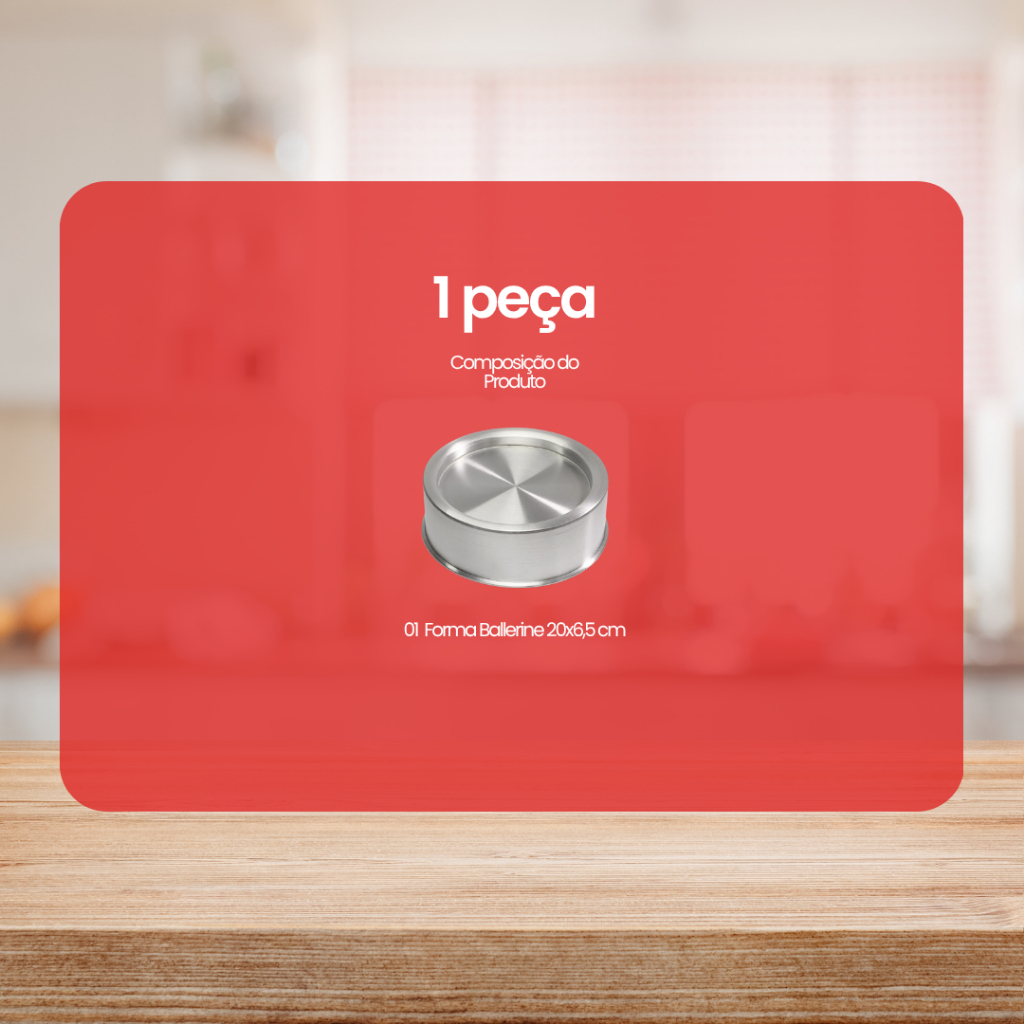 A Forma Ballerine Polida é ideal para o preparo de bolos e tortas, garantindo um cozimento uniforme e eficiente. Seu design sofisticado, com bordas arredondadas e acabamento polido, proporciona praticidade e um toque especial às suas receitas. Fabricada em alumínio puro, distribui o calor de maneira uniforme, resultando em massas leves e bem assadas. Seja para ocasiões especiais ou para o dia a dia, essa forma é indispensável para quem busca qualidade e durabilidade na cozinha. Composição do Produto - Forma Ballerine - 20x6,5 cm Especificações técnicas - Produto certificado, fabricado em alumínio puro com acabamento polido. - Superfície externa polida para maior durabilidade. Recomendações de uso - Antes do primeiro uso, aplique uma fina camada de óleo na superfície interna e aqueça brevemente no fogão para ativar o revestimento antiaderente. - Lave normalmente com sabão neutro e utilize apenas esponjas macias. - Ao utilizar utensílios quentes, tenha cuidado redobrado e, se necessário, utilize proteção para as mãos.