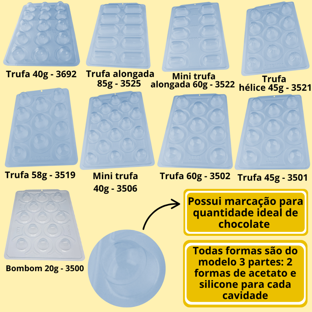 Forma Bombom Trufa Trufão Chocolate 20g 30g 40g 45g 60g 85g Semiprofissional Especial c/ Silicone (3 partes) BWB