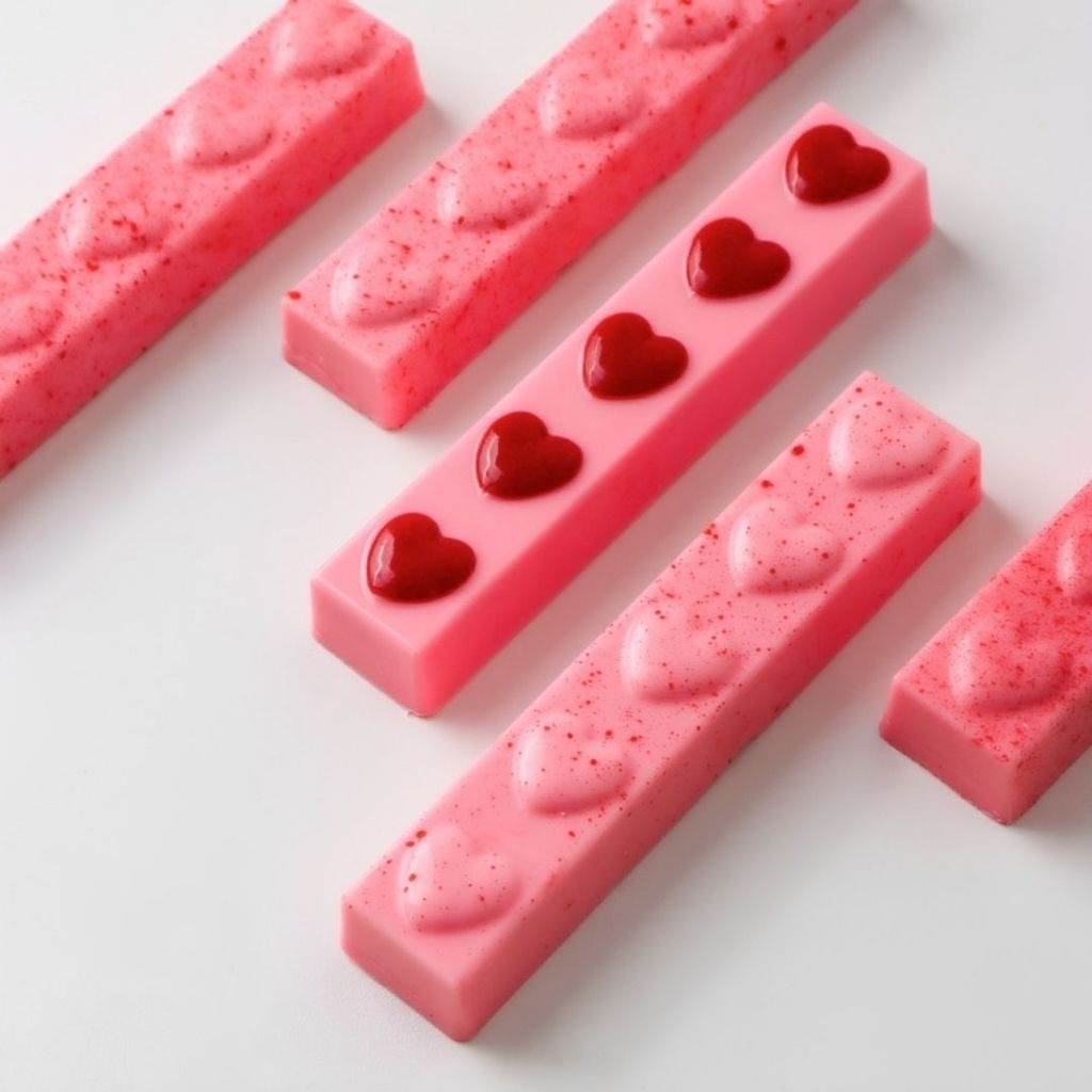 FORMA ESPECIAL TRADICIONAL BARRINHA DO AMOR 10634 Modelo: Forma Especial Cavidades: 4 C.125 x L.25 x A.13 mm Peso casca: 13 g Peso médio: 61 g