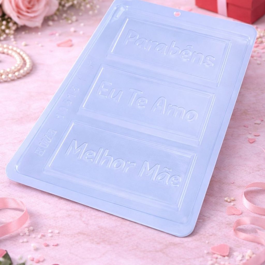 FORMA SIMPLES TRADICIONAL TABLETE MENSAGENS 10615 Modelo: Forma Simples Cavidades: 3 C.118 x L.60 x A.6 mm Peso médio: 35 g
