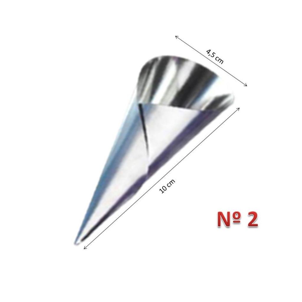 24 unidades de FORMA DE CANUDO – Nº 2 - EM FLANDRES As formas de canudo oferecem a solução ideal para preparar seus salgado e doces de maneira uniforme, para festas de aniversário, casamento entre outros. Dimensões do produto: Comprimento lateral: 10,0 cm Diâmetro superior: 4,5 cm Orienta-se lavar em água morna e detergente antes do uso. As forminhas são feitas de folhas de flandres, um tipo de aço. Esse material pode ser lavado e reutilizado por diversas vezes. Recomenda-se lavar e secar as forminhas antes de guardar para prolongar sua durabilidade e não enferrujar.