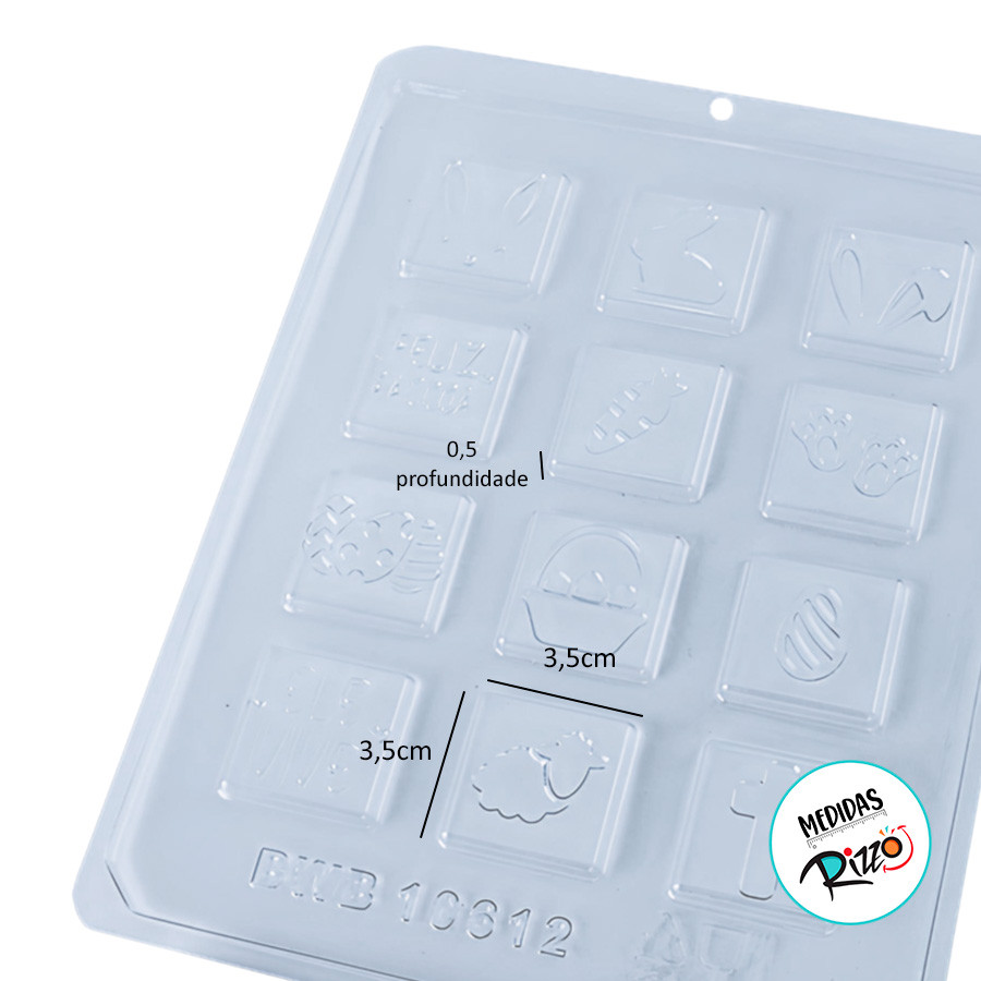 Forma de Acetato Aplique Tabletinho Quadrado Páscoa - Ref.10612 - 1 unidade - BWB - Rizzo A Forma de Acetato Aplique Tabletinho Quadrado Páscoa é a escolha perfeita para quem quer criar pequenos apliques de chocolate para enfeitar seus doces de Páscoa. Ideal para decorar ovos de Páscoa, brigadeiros e outros chocolates, ela permite a produção de tabletinhos quadrados detalhados temáticos que trazem um toque elegante e temático. Com seu design prático, você consegue criar apliques com um acabamento impecável, ideais para dar aquele toque especial nas suas criações pascais. A Forma de Acetato Aplique Tabletinho Quadrado Páscoa é perfeita para quem deseja surpreender com chocolates decorativos e de alta qualidade! Composição: PET e Pigmento Medidas Aproximadas: 3,5 cm de comprimento x 3,5 cm de largura x 0,5 cm de profundidade Contém 1 unidade. Dúvidas Frequentes: Quanto tempo leva o envio? ⏰ Todos os pedidos com etiqueta de envio liberado pela shopee até as 18hs são coletados no próximo dia útil pela transportadora Shopee Express. Qual o prazo de entrega? 🛵 A loja não tem acesso a parte logística da shopee. A Shopee não informa para a loja prazo de entrega. Ao clicar em comprar na opção envios é apresentado o prazo de entrega. O produto é novo? 😀 Sim. Só trabalhamos com produto novos e dentro da embalagem original do fabricante. Como faço para comprar mais de um item da loja? 🛍 No app ao lado do botão comprar tem o ícone de um carrinho de supermercado, clicando nele o produto será acrescentado no carrinho que fica na parte superior do app. Após acrescentar todos os produtos que gostaria é só clicar no carrinho e selecionar todos os itens e clicar em continuar. Comemore com Alegria: 🥰😀 Na Rizzo Distribuidora, a tradição e o encanto do nosso espaço físico no coração da 25 de março, em São Paulo, são cuidadosamente embalados para chegar até você. Permita-nos levar a magia de uma das lojas mais tradicionais da região diretamente para o conforto da sua casa ou empresa.
