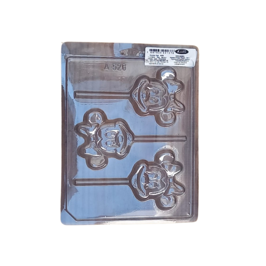 DRINA VARIEDADES FORMAS DE PIRULITO Rato mouse 2 MICKEY + 2 MINNIE FORMA DE ACETATO PIRULITO rato mouse Forma de acetato para chocolate, artesanato e outros. - Pacote contém ( SORTIDO: 2 MICKEY + 2 MINNIE) Ou ( 3 MICKEY ) OU ( 3 MINNI ) - 3 cavidades - 25 GRAMAS (O molde tem Aproximadamente 7,5 cm 25 gramas Aproximadamente.) ESCOLHA SUA VARIAÇÃO. *Peso aproximado conforme consistência do chocolate e mistura de ingrediente* BANDEIJA : 20X25 COMPOSIÇÃO: PET - ***CUIDADOS COM A FORMA; ANTES E APOS O USO DA FORMA LIMPE-AS COM O PANO UMEDECIDO COM ÁGUA MORMA, DEIXA SECAR. NUNCA USAR DETERGENTE SABÃO OU BUCHA. ( DURABILIDADE CONFORME SEU USO). MANTER A EMBALAGEM FORA DO ALCANCE DAS CRIANÇAS MENOS DE 7 ANOS *** CONSERVAR FORA DA LUZ SOLAR ; NÃO EXPOR A TEMPERATURA MAIOR QUE 45 GRAUS