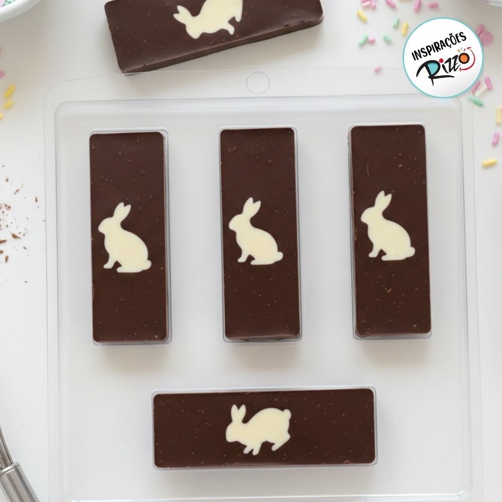 Forma de Acetato Simples - Tablete Coelhinho de Páscoa - Ref.5043 - 1 unidade - Crystal Forming - RizzoA Forma de Acetato Simples para tabletes de coelhinho de Páscoa é ideal para criar chocolates temáticos com praticidade e ótimo acabamento. Com 5 cavidades, permite a produção de tabletinhos lisos, cada um com um coelhinho diferente, trazendo variedade e charme para a Páscoa.Produzida em acetato, a forma garante fácil desenforme e boa definição dos detalhes, valorizando os desenhos dos coelhinhos. É perfeita para chocolates artesanais, lembrancinhas, kits de Páscoa e produções sazonais, oferecendo padronização e um resultado profissional.Composição:PETMedidas Aproximadas:Forma: 23x16cm | Cavidade: 8,5x3cmContém 1 unidade. ObservaçõesPreencha as cavidades com chocolate derretido, leve para cristalizar e desenforme com cuidado. Ideal para uso com chocolate nobre ou fracionado, podendo ser combinada com embalagens temáticas de Páscoa.forma acetato;forma tablete pascoa;coelhinho pascoa;tablete chocolate;forma 5 cavidades;chocolate artesanal;molde chocolate pascoa;forma simples acetato;lembrancinhas pascoa;tabletinhos chocolate;molde coelho;producao pascoa;confeitaria;forma para doces;chocolate tematico13008315;7908013117834 Aqui tudo é de extrema qualidade. Transformamos simples momentos, em grandes realizações. * Todas as informações divulgadas são de responsabilidade do fabricante/fornecedor * Imagens ilustrativas, as cores podem alterar conforme o seu monitor * Medidas aproximadas * Todas as imagens e descrições são meramente ilustrativas. Caso exista alguma imagem do produto aplicado, ou decorado, saiba que é apenas uma inspiração da Rizzo e sugestão de uso. Outros itens que possam aparecer na foto são vendidos separadamente. * A representação visual dos produtos pode não ser perfeitamente precisa. * As especificações, funções e aparência do produto podem variar de acordo com o modelo e de país para país. * Todas as especificações estão sujeitas a alterações sem aviso prévio. * Embora nos esforcemos para apresentar as informações mais precisas e abrangentes no momento da publicação, um pequeno número de itens pode conter erros de tipografia ou fotografia.