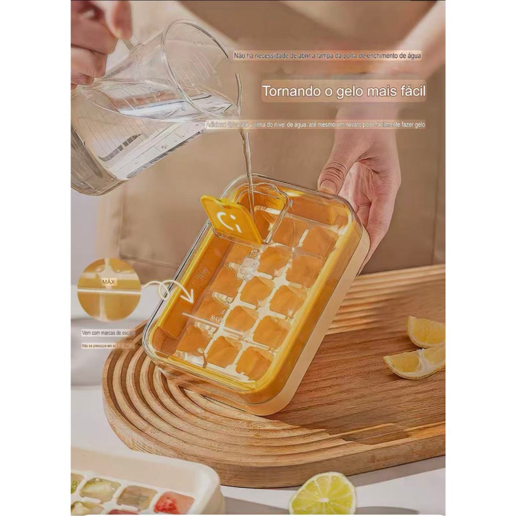 A bandeja de gelo oferece praticidade e eficiência com seus 15 compartimentos, permitindo a remoção fácil de cubos de gelo com apenas um toque, enquanto permanece convenientemente armazenada. Sua tampa removível e bandejas empilháveis, feitas de ABS, maximizam o espaço disponível. Além disso o recipiente transparente permite visualizar o conteúdo sem necessidade de abrir, garantindo uma experiencia visual aprimorada. Ideal para uso doméstico, festas e bares. Os moldes de gelo tornam sua vida mais fresca e refrescante. Aproveite ao máximo suas bebidas favoritas com cubos de gelo feitos com praticidade e estilo.