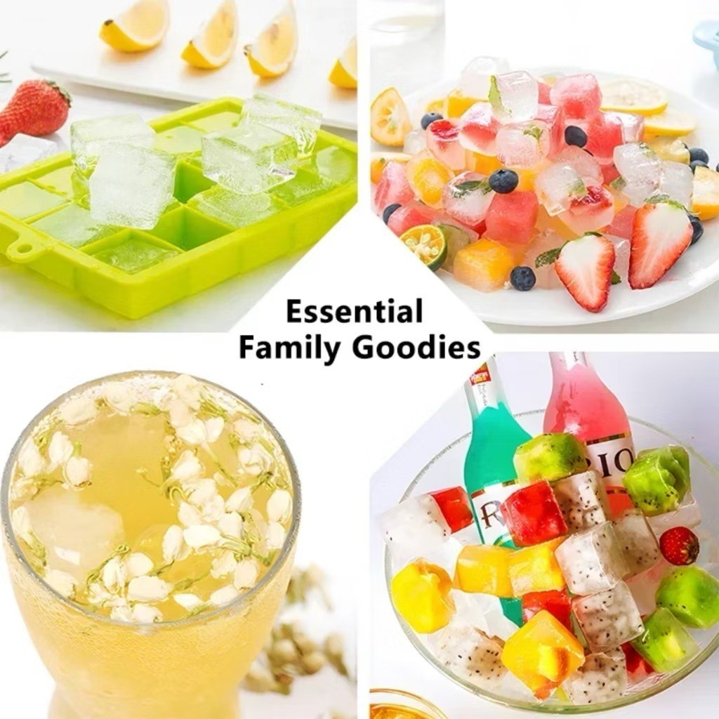 Forma de Gelo em Silicone com Tampa Moldes de 24 Cubos de Gelo Quadrados para Uso Doméstico