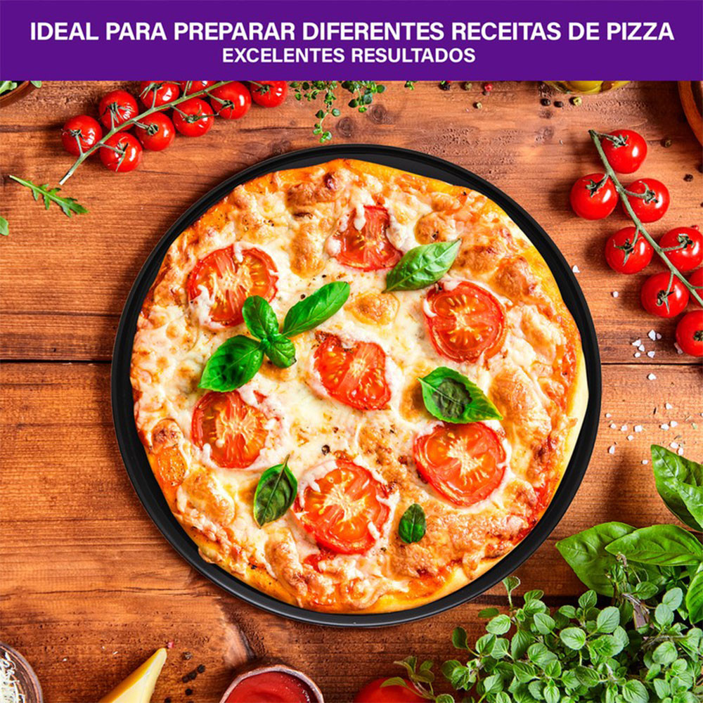Pizzas crocantes e assadas por igual: A Assadeira Rochedo Dura+ 35cm distribui o calor uniformemente, garantindo bordas crocantes e um interior macio. Ideal para assar pizzas caseiras ou congeladas com perfeição. - Antiaderente interno e externo: O revestimento antiaderente evita que os alimentos grudem e facilita a limpeza. Mais praticidade para o dia a dia, sem necessidade de esforço para remover resíduos. - Desenforma fácil, sem precisar untar: Prepare suas pizzas favoritas sem necessidade de óleo ou farinha. O antiaderente de alta performance garante que a massa solte facilmente, preservando o formato perfeito. - Resistência e durabilidade garantidas: Fabricada com materiais de alta qualidade, essa assadeira é robusta e projetada para durar, suportando o uso frequente sem perder a eficiência. - Segurança garantida: Livre de PFOA e com a tradição da Rochedo, presente há mais de 100 anos no Brasil, garantindo um produto seguro, resistente e ideal para o preparo de receitas com qualidade e confiança. Especificação técnica: Modelo: Dura+35cm. Cor: Vermelho. Tipo de material: Alumínio. Conteúdo da embalagem: 1 Assadeira Pizza 35cm.