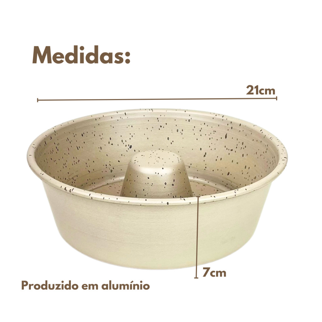 🍮Forma de Pudim Bolo e Bolo Suíço Antiaderente Alumínio Reforçado Marfim (Kit 2 Formas Nº20)