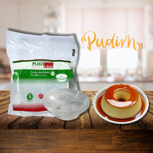 Forma de Pudim Redonda com Tampa Forma Forneavel Tamanho Familia c/ 5un 1100ml