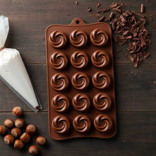 Forma de Silicone Marrom com 15 Cavidades de Rosas para Bombons e Doces Gourmet