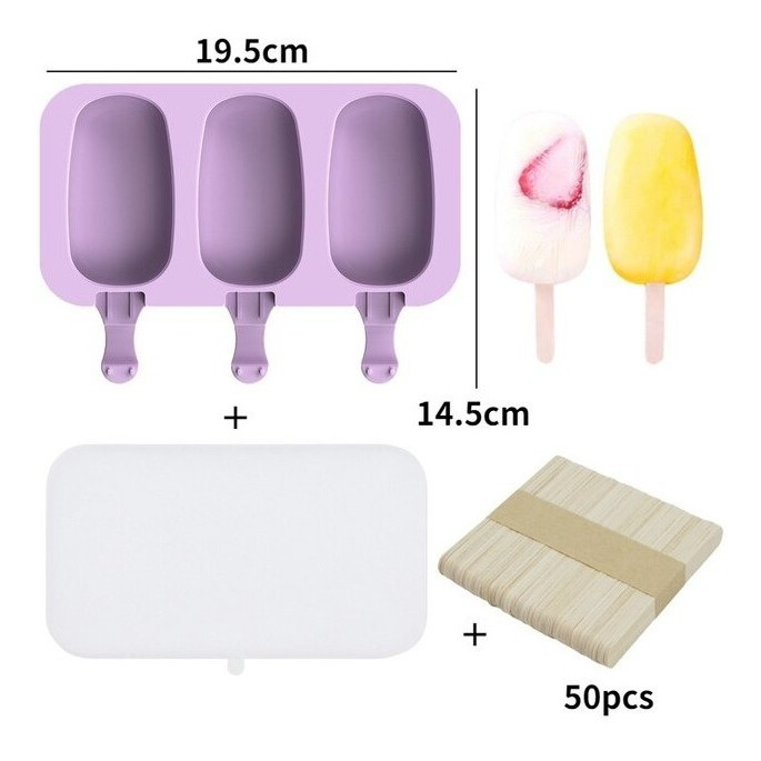Forma De Silicone Molde para Picolé Tampa Com 100 Palitos