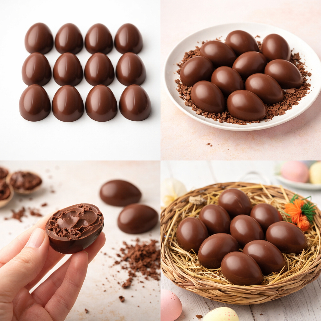 **Molde de Chocolate 12 Cavidades para Ovos de Páscoa** Este molde de chocolate de 12 cavidades é perfeito para criar ovos de Páscoa personalizados e deliciosos. Feito com material de alta qualidade, garante uma distribuição uniforme do chocolate, proporcionando ovos de formato perfeito e acabamento impecável. Ideal para quem deseja fazer ovos de Páscoa caseiros com facilidade e praticidade, o molde permite a criação de 12 ovos de tamanhos pequenos, ideal para presentear ou vender. Seu design é pensado para proporcionar facilidade de desmoldagem, garantindo que seus ovos saiam intactos e prontos para serem decorados. Além disso, pode ser utilizado com diferentes tipos de chocolate, como ao leite, branco ou amargo. Com este molde, você pode soltar sua criatividade e criar ovos de Páscoa exclusivos, recheados ou com coberturas diversas. Perfeito para quem busca qualidade e eficiência na produção artesanal de ovos de chocolate para a Páscoa!