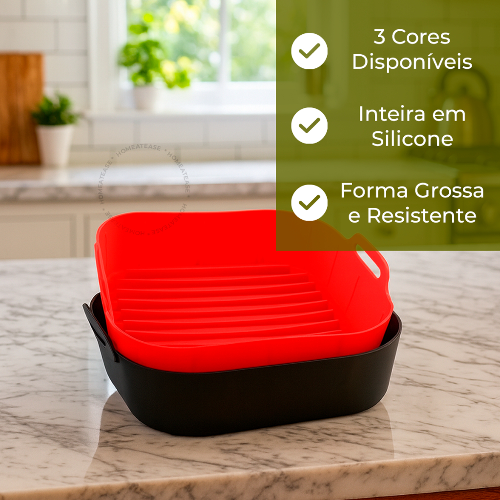 Seja Bem Vindo HOMEATEASE! Escolha entre 1/2 ou 3 formas Cansado de lidar com a difícil tarefa de limpar a sujeira gordurosa da sua Air Fryer? Apresentamos a solução ideal: a inovadora bandeja siliconada. Desenvolvida para simplificar sua vida na cozinha, essa bandeja de silicone oferece uma série de benefícios que transformarão sua experiência de preparo de alimentos. Principais Características: Limpeza Facilitada: Diga adeus às manchas de óleo impregnadas na sua fritadeira elétrica. A bandeja de silicone cria uma barreira eficaz, tornando a limpeza rápida e descomplicada. Aumento da Vida Útil: Ao proteger sua Air Fryer contra resíduos de alimentos e óleo, essa bandeja contribui para a preservação do aparelho, prolongando sua durabilidade. Prevenção de Resíduos e Alimentos Grudados: Esqueça a preocupação com resíduos indesejados ou alimentos grudados na sua Air Fryer. A bandeja de silicone impede que esses elementos entrem no aparelho, proporcionando uma experiência de cozimento mais limpa e eficiente. Lavável e Econômica: As bandejas de silicone são totalmente laváveis, o que significa que você pode reutilizá-las diversas vezes. Além de economizar tempo, essa característica representa uma opção econômica e ambientalmente amigável. Material de Alta Qualidade: Fabricada com silicone de qualidade para produtos alimentícios, essa bandeja oferece a segurança necessária para o contato com alimentos. Seu material macio e resistência ao calor até 230°C garantem um desempenho confiável durante o cozimento. Dimensões: Tamanho Ideal: Com dimensões de 20 cm x 20 cm x 5cm, essa bandeja foi projetada para se adequar perfeitamente à sua Air Fryer, proporcionando uma cobertura eficaz. Conclusão: Não permita que a limpeza da sua Air Fryer seja uma tarefa árdua. Com a bandeja de silicone, você terá mais praticidade, economizando tempo e energia. Invista em uma solução que não só simplifica a manutenção do seu aparelho, mas também contribui para um ambiente de cozinha mais limpo e organizado. Adquira a sua bandeja siliconada agora e descubra uma nova maneira de desfrutar da culinária sem as preocupações com a sujeira persistente. Marca das Formas: Sortidas