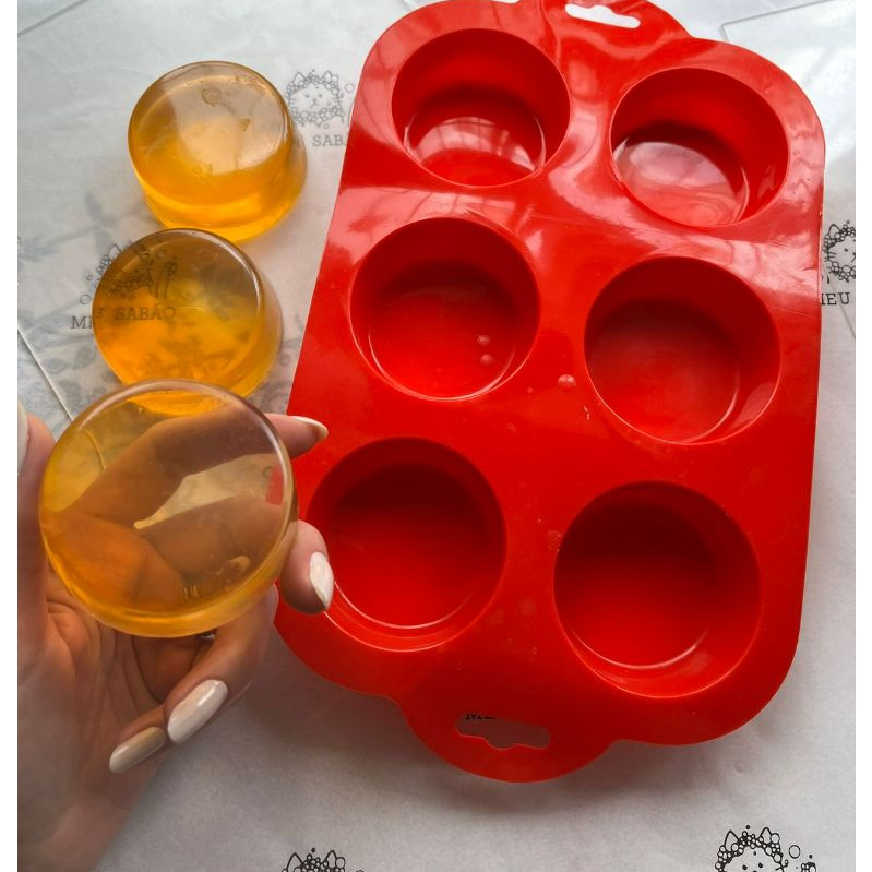 Forma de Silicone Redonda com 6 cavidades, antiaderente e flexível: facilitando o desenforme sem esforço. Indicada para saboaria artesanal, com excelente desempenho em sabonetes glicerinados e cold process (especialmente os com alto teor de óleos saturados). E também para uso culinário, com temperatura suportada até 220º. Medidas: 6 x 6 cm Profundidade: 2,5 cm Capacidade: 80 g Limpeza e Higienização: Lavar somente com agua fria e detergente neutro. Não usar abrasivos. Disponível nas cores: Sortida. Anúncio referente a 1 unidade. Não é possível escolher a cor. Será enviada na cor disponível na loja, podendo ser preta ou vermelha.