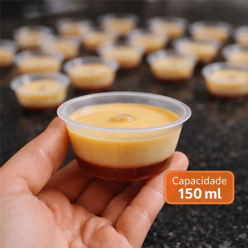 Destaque seus Mini Pudins com as Nossas Formas de 150 ml com Tampa As formas plásticas de 150 ml foram desenvolvidas para facilitar o preparo, armazenamento e venda dos seus mini pudins. Ideais para produções padronizadas, valorizam o produto final e ajudam a fortalecer sua marca. Além disso, permitem o uso direto no banho-maria, garantindo um cozimento uniforme e seguro. Características do Produto – Forma 150 ml ✔ Capacidade: 150 ml ✔ Material: Polipropileno (PP) virgem, resistente e atóxico ✔ Livre de BPA – segurança alimentar garantida ✔ Uso indicado: Banho-maria, forno, micro-ondas e freezer ✔ Tampa inclusa (conforme opção selecionada) Uso e Recomendações Indicada para preparo de mini pudins, flans, gelatinas e sobremesas individuais Ideal para banho-maria (seguir instruções da embalagem) Não aquecer a água previamente e não deixar a água secar durante o preparo Suporta altas temperaturas em banho-maria ⚠️TAMPA NÃO VAI AO FORNO⚠️ Vantagens ✅ Praticidade no preparo e na apresentação ✅ Facilita transporte e armazenamento ✅ Ótima para confeitarias, padarias e vendas por encomenda ✅ Aparência profissional e padronizada Informações Técnicas Cor: Transparente Capacidade: 150 ml Quantidade: Pacote com 10 unidades com tampa