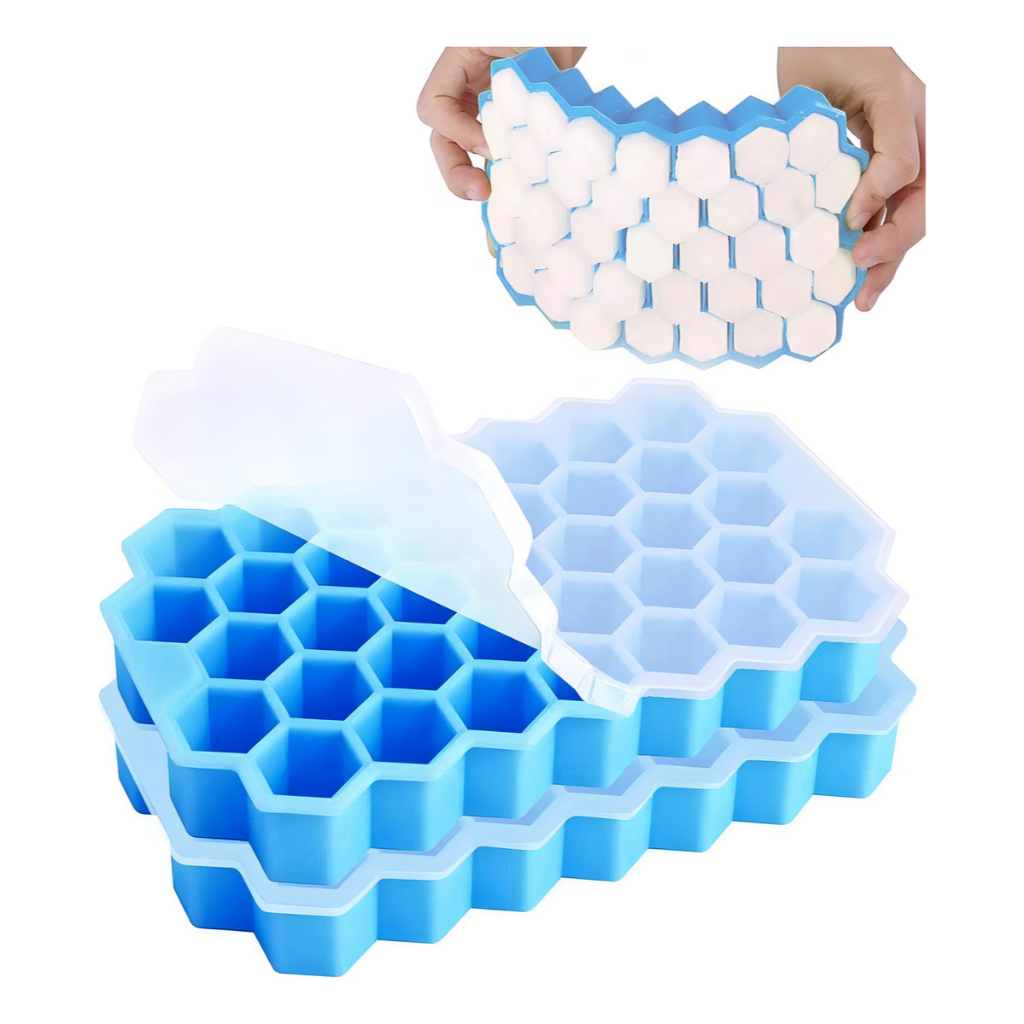 Forma Gelo Silicone Colmeia Com Tampa 37 Cubos Coloridos Bombom Hexagonal Flexível