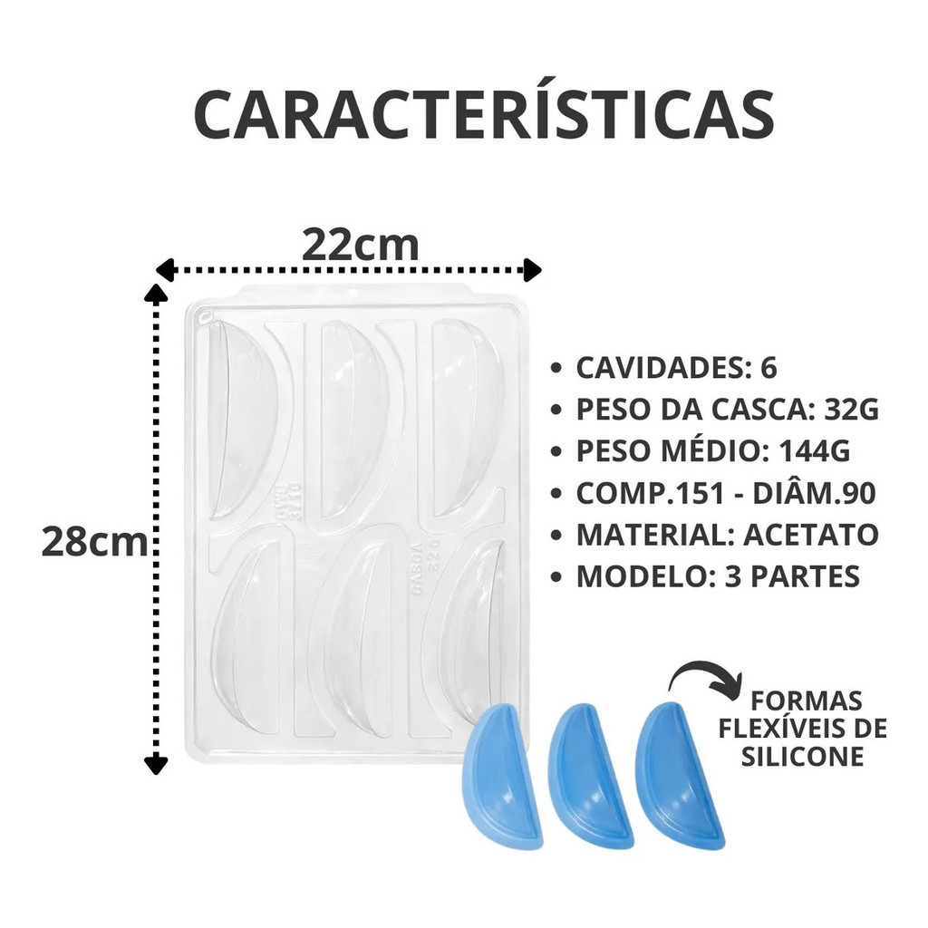 🐰 Forma Ovo de Páscoa em Fatias BWB – Acetato + Silicone Crie Ovos de Páscoa em Fatias 3D com acabamento profissional usando a Forma BWB de Acetato com Silicone. Ideal para confeiteiros, produção para venda e para quem quer inovar na Páscoa 2026. Perfeita para acompanhar a tendência de ovos em fatias, essa forma garante padronização, brilho intenso e desenforme fácil, proporcionando praticidade e resultado impecável em cada produção. ✨ Diferenciais do Produto: ✔ Marca reconhecida: BWB ✔ Material resistente: Acetato + Silicone alimentício ✔ Modelo 3 partes (mais precisão e facilidade) ✔ Ideal para chocolate nobre ou fracionado ✔ Acabamento profissional e uniforme ✔ Reutilizável e fácil de limpar 🎂 Ideal para: Produção de ovos de Páscoa em fatias Confeitaria artesanal Produção para venda Sobremesas criativas e gourmet Presentes personalizados Transforme suas criações e aumente suas vendas na Páscoa com um molde que une qualidade, praticidade e tendência. 💡 Garanta já sua forma e surpreenda com ovos de Páscoa em fatias lindos e irresistíveis!