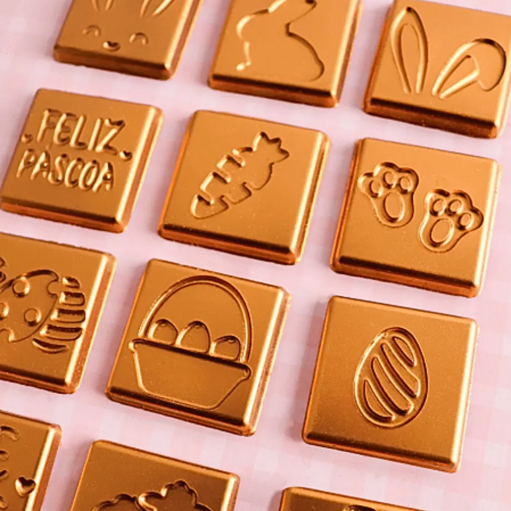 Forma p/ Chocolate Tabletinho Quadrado Páscoa Cod. 10612 Tradicional Simples Bwb