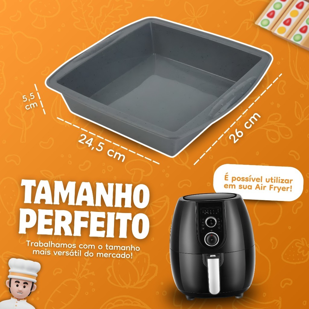 Prepare receitas deliciosas com muito mais praticidade! A forma quadrada na cor chumbo é ideal para assar bolos, tortas, pães e diversas sobremesas. Seu design moderno com alças laterais proporciona firmeza e segurança no manuseio, além de trazer um toque sofisticado para sua cozinha. Destaques do Produto: - Material resistente e durável, garantindo longa vida útil. - Revestimento antiaderente que facilita na hora de desenformar e na limpeza. - Formato quadrado, perfeito para bolos caseiros, tortas salgadas, sobremesas e muito mais. - Alças laterais ergonômicas, que proporcionam mais segurança ao retirar do forno. - Design moderno na cor chumbo, elegante e versátil para qualquer cozinha. Dimensões aproximadas: - Comprimento: 26 cm - Largura: 24,5 cm - Altura: 5,5 cm