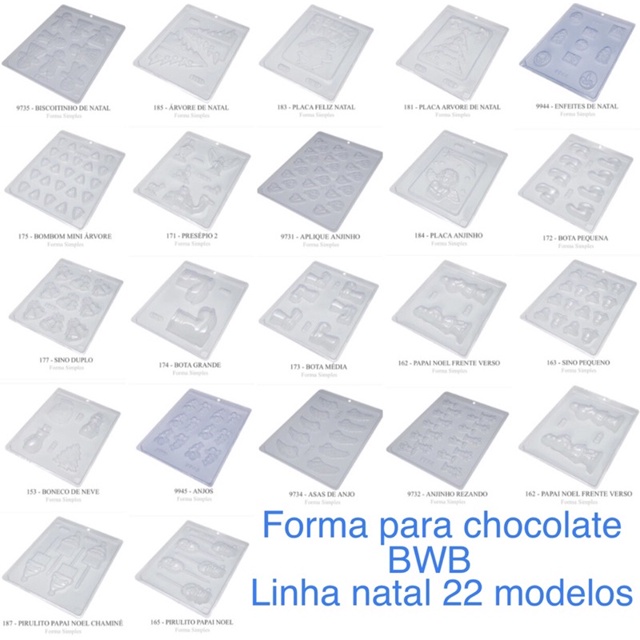 forma para chocolate BWB simples linha natal natalinos papai Nobel 22 modelos a escolha forma bwb em acetato simples linha completa de natal