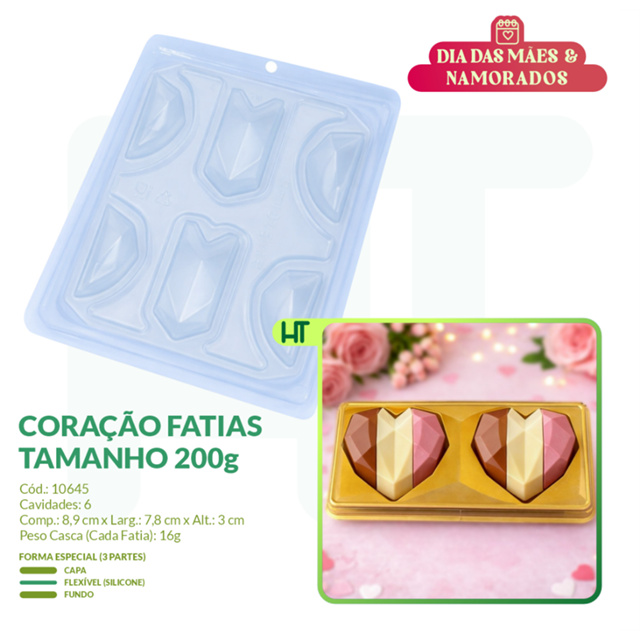 Forma para Chocolate - Coração Fatias Tamanho 200g BWB 10645 - LANÇAMENTO MÃES & NAMORADOS 2026