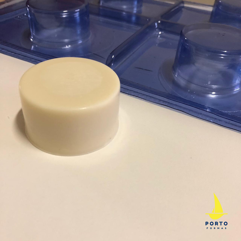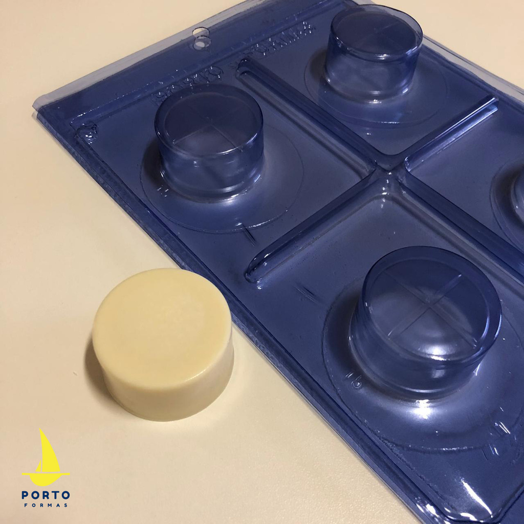 Forma Especial, 3 partes (2 de acetato e 1 de silicone) ideal para produção de chocolates com muita precisão e praticidade. Cód 15 (4 cavidades) 42 diam x 21 alt (mm) Peso da casquinha: 12g