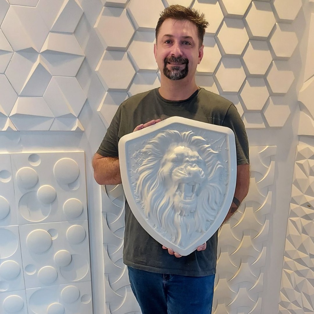 Forma Para Decoração de Ambiente Escudo Leão Modelo: D0824 Medidas: 50x42cm Material: Poliéster 1.2mm Quantidade: 1 unidade Uso para gesso Somos a Decorativas, pioneira na fabricação de moldes para revestimento 3D desde 2013. Trabalhamos com a mais moderna tecnologia na fabricação de nossos produtos, o que garante a mais alta qualidade e o melhor acabamento do mercado. O design de nossos modelos é criado por nossa equipe de desenvolvimento, o que torna nossos produtos originais e inovadores. Você pode acompanhar nosso trabalho pelo nosso canal e se informar com os vídeos instrutivos. Antes de escolher seu fornecedor você pode ir no link “ver mais dados do vendedor” e conhecer a opinião dos compradores. Produtos com Registro no INPI, plágio sujeito a ação legal por cópia de desenho industrial.