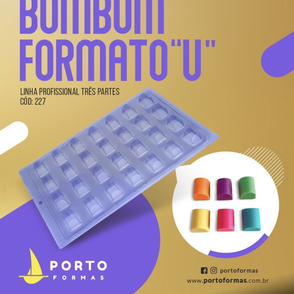 Forma Profissional Para Chocolate C/ Silicone Bombom Formato U Porto P227//