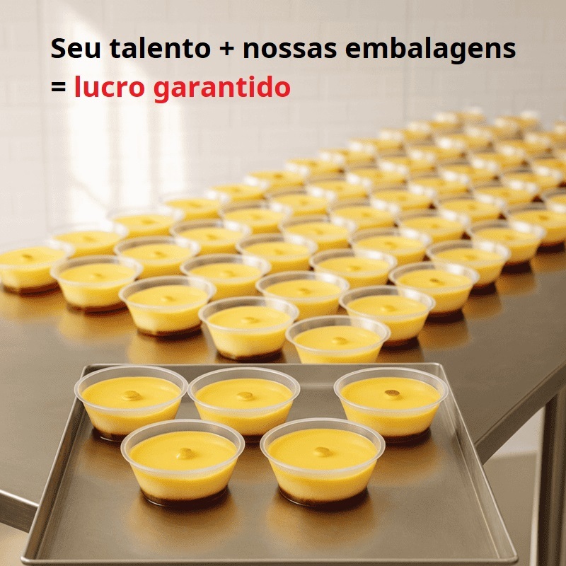 Ganhe Dinheiro com Mini Pudins: Oportunidade Doce e Lucrativa! Você já pensou em transformar sua paixão por confeitaria em um negócio rentável? Produzir mini pudins é a solução perfeita! Baixo investimento inicial e altas margens de lucro, essa sobremesa encantadora atende à crescente demanda de festas, eventos corporativos e vendas online. Invista em mini pudins e transforme sua cozinha em uma fonte de lucros e satisfação. Potencialize Seu Negócio de Mini Pudins com as nossas Formas Forneáveis de 120ml que podem ir diretamente ao Forno em Banho Maria Embalagens criativas e personalizadas valorizam ainda mais seu produto, destacando sua marca no mercado. As Formas Plásticas de 120 ML são Adequadas para Uso em Forno, Micro-ondas e Freezer, incluindo a utilização em Banho-Maria. TEMOS 2 Opções de TAMPAS > Basta Selecionar: PP Forneável ou PET (econômica). Características das Formas 120 ML 1. Material: Feitas de polipropileno (PP) virgem, são resistentes e atóxicas. 2. Uso Versátil: Podem ser utilizadas no forno, micro-ondas e freezer. 3. Banho-Maria: Específicas para preparo em banho-maria, ideal para pudins e outras sobremesas que exigem cozimento uniforme e suave. Suporta até 180 Graus em Banho Maria (vide instruções da embalagem). 4. Instruções de Uso: > Forno: Colocar na grade mais baixa do forno. > Banho-Maria: Não esquentar a água previamente e não deixar a água secar durante o processo. 5. Vantagens da Forma > Durabilidade: Desenvolvidas para resistir a diferentes condições de temperatura sem comprometer a qualidade do produto. > Praticidade: Ideais para o preparo e armazenamento de sobremesas, facilitando tanto o processo de produção quanto a apresentação final. > Segurança Alimentar: Fabricadas com materiais que garantem a segurança dos alimentos, são Livres de Bisfenol-A (BPA). Essas Formas são especialmente práticas para Confeitarias e Padarias, permitindo um preparo eficiente e seguro dos seus produtos, como pudins, que demandam um cozimento específico e controlado. Dimensões: Diâmetro de Boca: 96mm / Altura: 38mm DÚVIDA se VAI aí FORNO? Veja esse VÍDEO Completo no YOUTUBE!!! PACOTES com 10 Unidades c/TAMPA COR : Transparente Capacidade : 120 ML