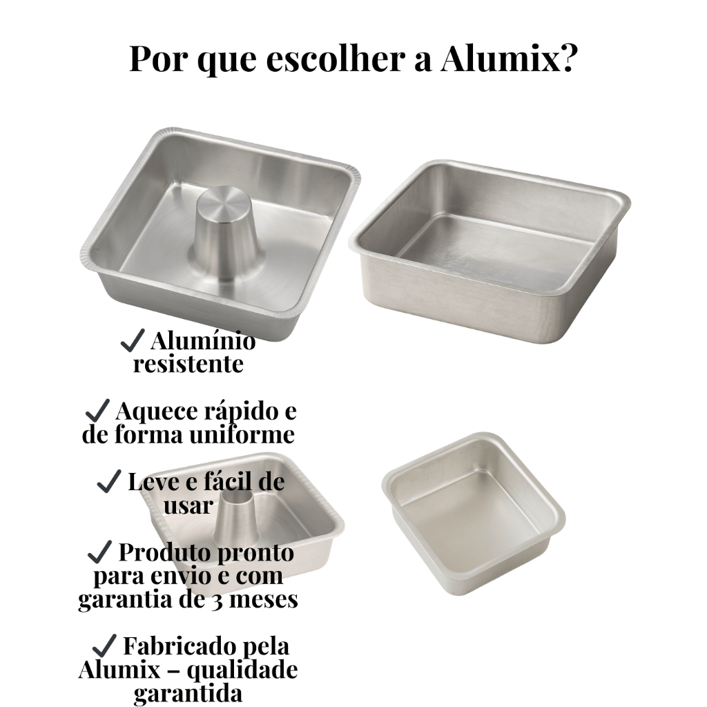Forma Quadrada Alumínio Bolo e Pudim Com e Sem Cone | 15x15x6 e 20x20x7