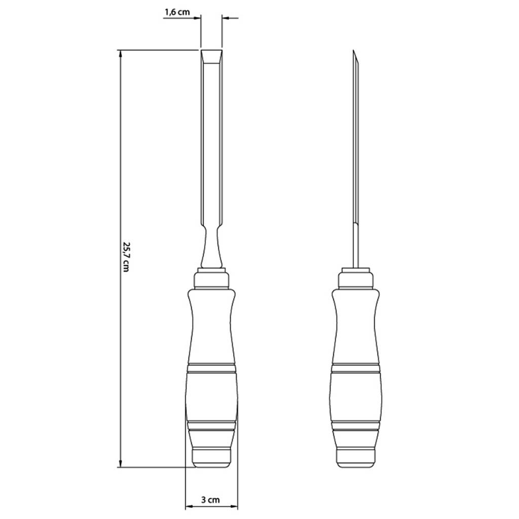 Formão Chanfrado 5/8" Tramontina Master Cabo de Madeira 43330/104 Descrição do Produto: - Se você é carpinteiro ou marceneiro, ou somente um amante das artes em madeira, o Formão Chanfrado 5/8 polegadas Tramontina em Aço Cromo Vanádio com Cabo de Madeira é uma ferramenta que você precisa conhecer. Características: - Lâmina em aço cromo vanádio temperado e lixado; - Lâmina chanfrada e polida; - Cabo de madeira ergonômico envernizado; - As ferramentas são submetidas a testes de aplicação prática para garantir sua resistência mecânica em uso intenso; - É aplicada uma camada de verniz ou pintura anticorrosiva sobre as lâminas para garantir uma maior vida útil da ferramenta; - As ferramentas são produzidas e testadas conforme normas específicas. Dados Técnicos: - Marca: Tramontina Master; - Referência: 43330/104; - Comprimento total: 25,7 cm; - Largura do cabo: 3, cm; - Largura da lâmina: 1,6 cm; - Peso: 0,120 kg. Componentes Inclusos na Embalagem: - 01 Formão Chanfrado 5/8" Tramontina Master Cabo de Madeira 43330/104.