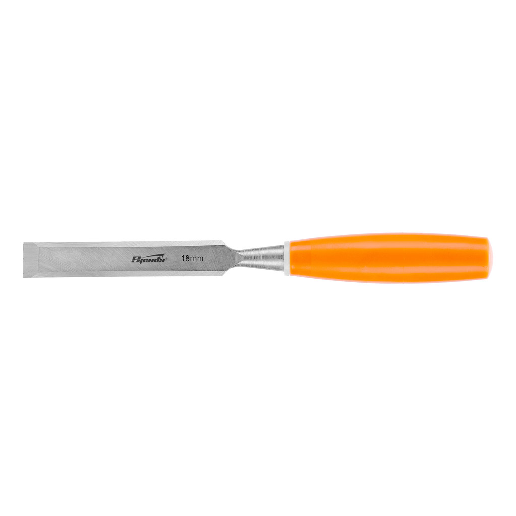 Formão Chanfrado Sparta 2442055 Descrição: Com lâmina de 18 mm, este formão é ideal para trabalhos finos em madeira, como limpeza de entalhes, remoção de chanfros e cortes precisos em reentrâncias. Perfeito para profissionais da carpintaria e entusiastas do faça-você-mesmo. Vantagens principais: Durabilidade: Lâmina em aço carbono estrutural 55, resistente e capaz de manter a afiação por longos períodos, mesmo com uso frequente. Corte Preciso: Dureza de 50-55 HRC e afiação especial entre 20° e 35°, garantindo cortes limpos e detalhados em diferentes tipos de madeira. Fácil Localização: Cabo de cor brilhante que facilita encontrar o formão rapidamente em oficinas ou locais com muitas ferramentas. Conforto: Cabo ergonômico em plástico resistente, proporcionando manuseio seguro e confortável, reduzindo a fadiga durante o uso prolongado.