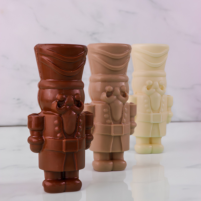 Cavidades: 2 Dimensões da cavidade: comp.: 120 mm x larg.: 55 mm x alt.: 22 mm x diâm.: 44 mm Peso casca: 56 g Peso médio: 104 g Modelo: forma especial Forma especial com silicone (3 partes), ideal para produção de chocolates com muito mais praticidade e precisão. Possui uma “marquinha” indicando a quantidade necessária de chocolate, levando para geladeira uma única vez. Ela proporciona uma casca uniforme e um acabamento perfeito sempre com o mesmo peso.